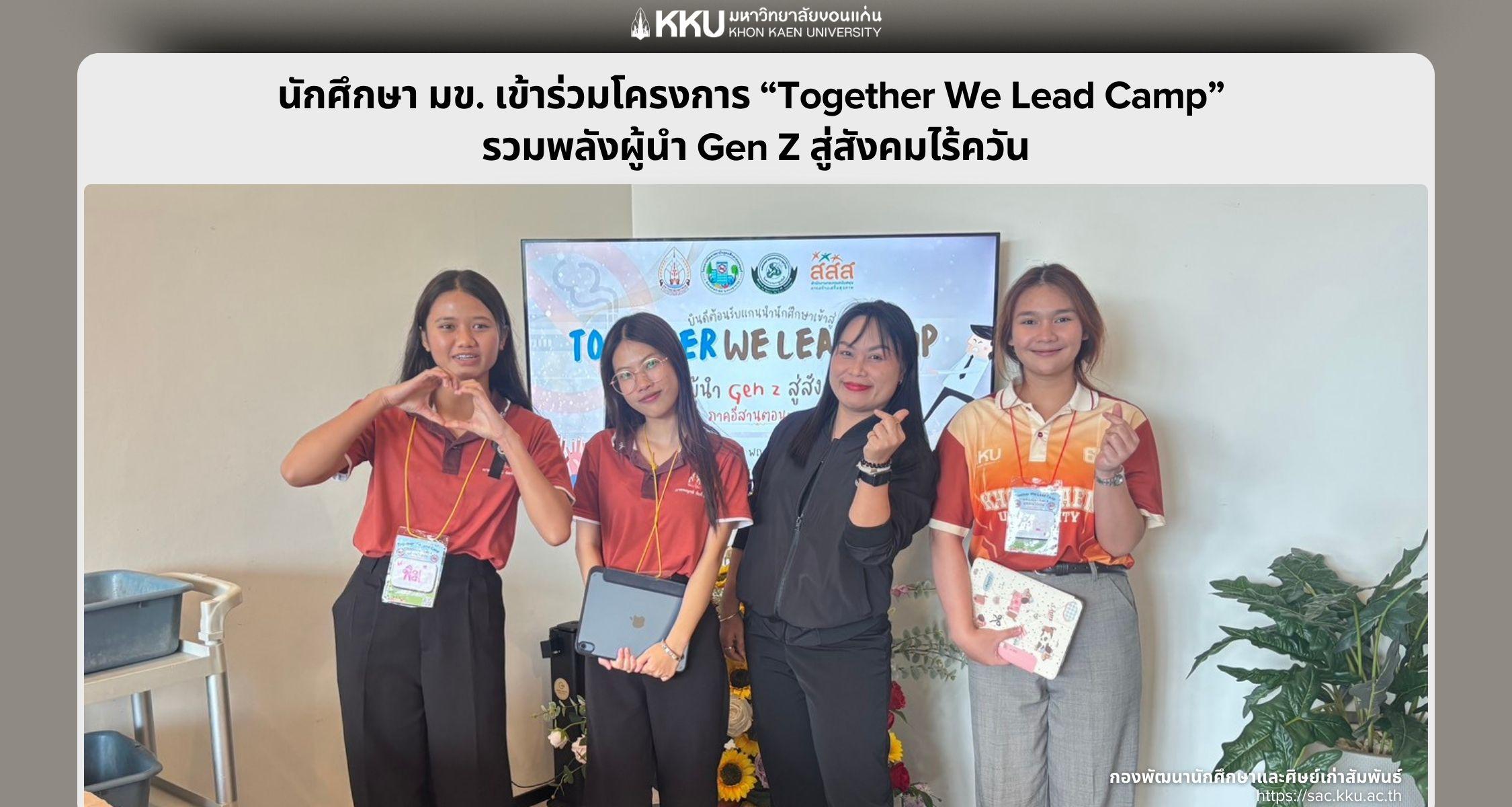 นักศึกษา มข. เข้าร่วมโครงการ “Together We Lead Camp” รวมพลังผู้นำ Gen Z สู่สังคมไร้ควัน นักศึกษามหาวิทยาลัยขอนแก่นเข้าร่วมโครงการ“Together We Lead Camp” รวมพลังผู้นำ Gen Z สู่สังคมไร้ควัน ซ
