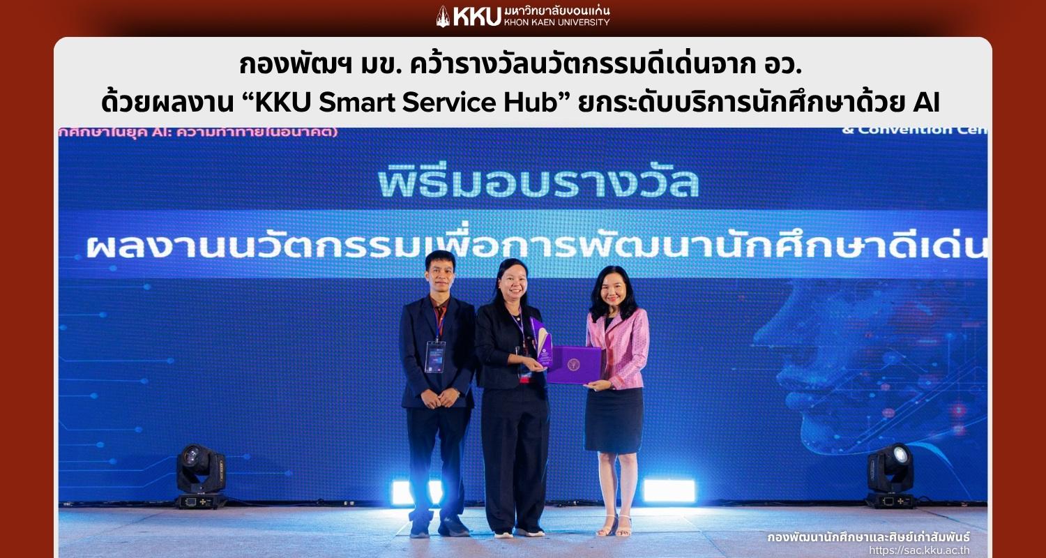 กองพัฒนานักศึกษาและศิษย์เก่าสัมพันธ์ มหาวิทยาลัยขอนแก่น สร้างชื่อเสียง คว้ารางวัล 1 ใน 10 ผลงานนวัตกรรมเพื่อการพัฒนานักศึกษาดีเด่น จากเวทีสัมมนาวิชาการระดับชาติ จัดโดยกระทรวง อว. ตอกย้ำความสำเร็จในการนำเทคโนโลยี AI มายกระดับการให้บริการนักศึกษาอย่างเป็นรูปธรรม