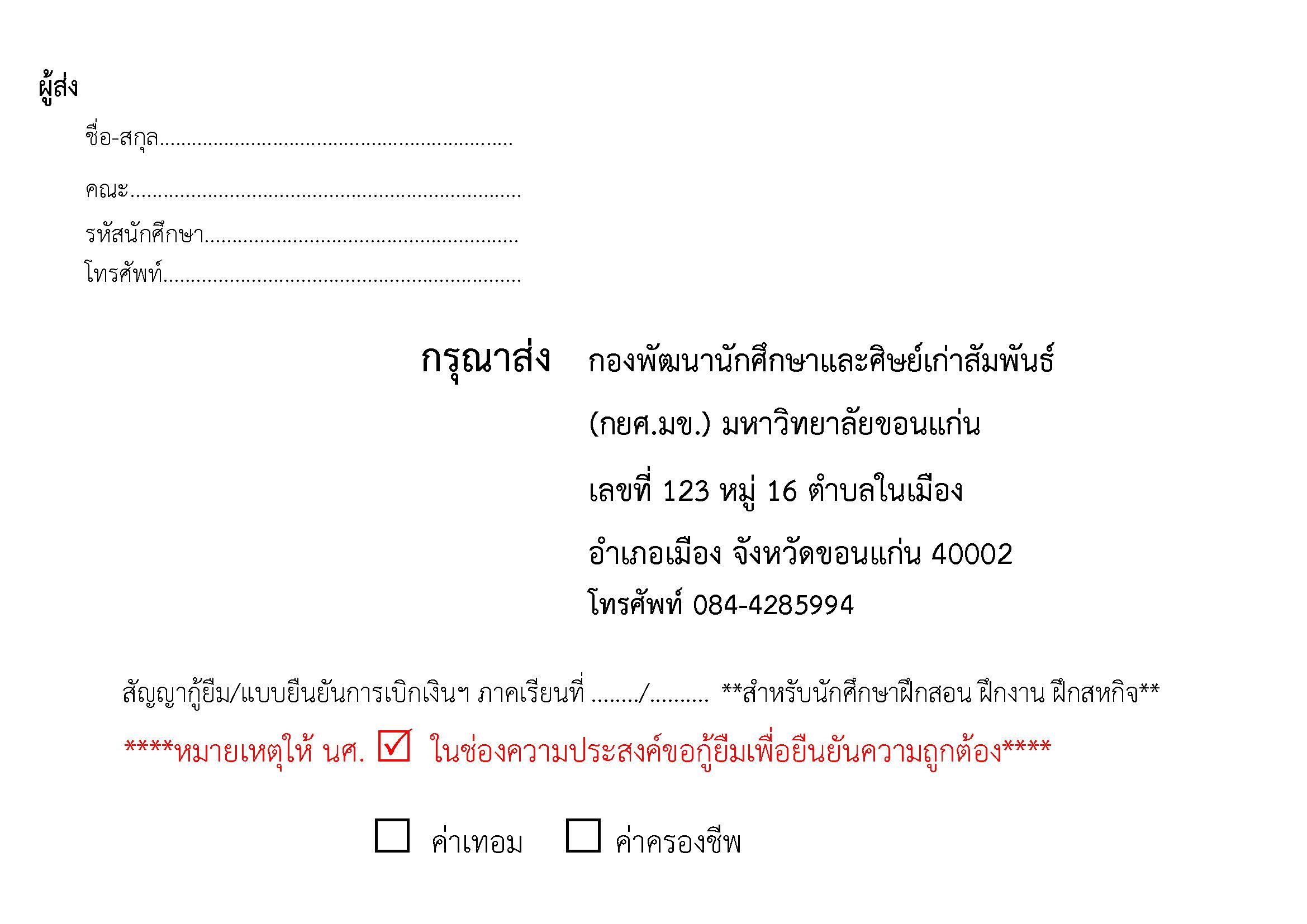 ผู้กู้ยืมนำส่งแบบยืนยันการเบิกเงินฯ ในระหว่างวันที่ 3 – 5 พฤศจิกายน 2568 เวลา 09.00 – 16.00 น. ณ ห้องประชุม1 ชั้น 2 กองพัฒนานักศึกษาและศิษย์เก่าสัมพันธ์ คณะสหวิทยาการ ส่งเอกสารได้ที่พี่ครีมมี่ ห้องงานพัฒนานักศึกษา ชั้น 1 อาคารสำนักงานบริหาร