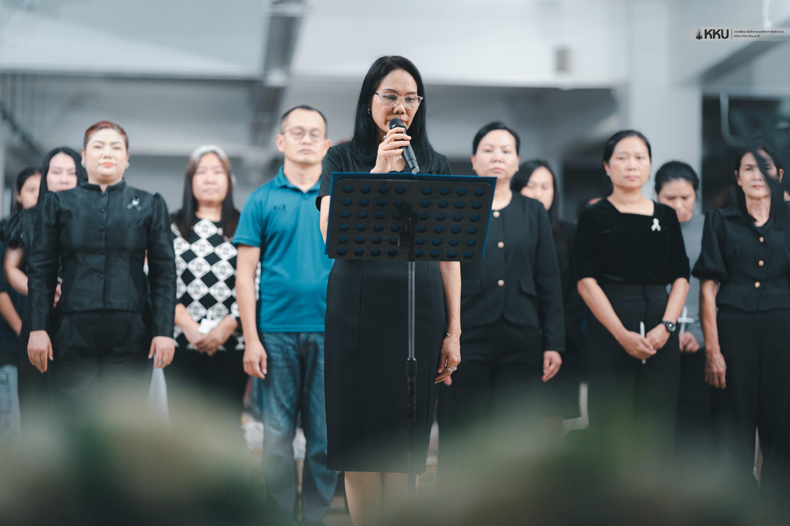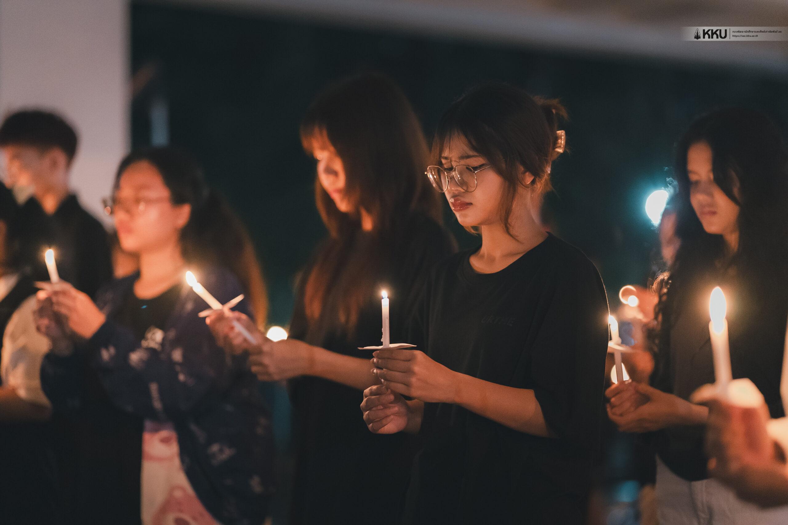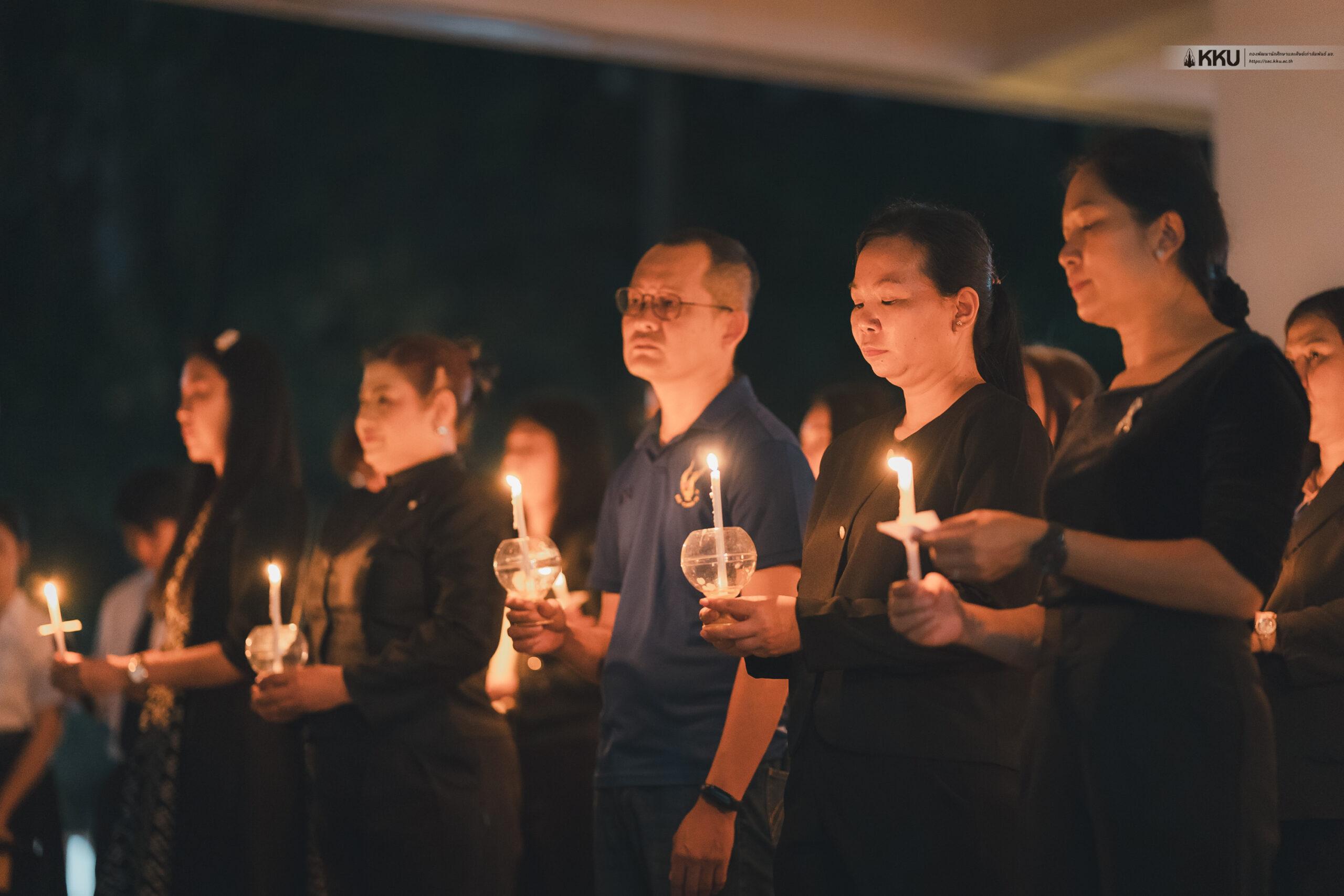 ช่วงต้นของกิจกรรม ได้มีการจัดพิธีจุดเทียนแสดงความอาลัยถวาย “พระผู้เสด็จสู่สวรรคาลัย” โดยมี วงดนตรีศรีพัชรินทร์แบนด์ จากมณฑลทหารบกที่ 23 ค่ายศรีพัชรินทร์ ร่วมบรรเลงเพลงพระราชนิพนธ์ “อาทิตย์อับแสง” สร้างบรรยากาศที่เปี่ยมด้วยความอาลัยและซาบซึ้ง นอกจากนี้ยังมีการกล่าวบทกลอนถวายอาลัยอันไพเราะโดย นายภูวดล ภูโยฮาต และ นางสาวสุนิสา วิราจันทร์ นักศึกษารางวัลศรีกาลพฤกษ์ ด้านศิลปวัฒนธรรมไทย