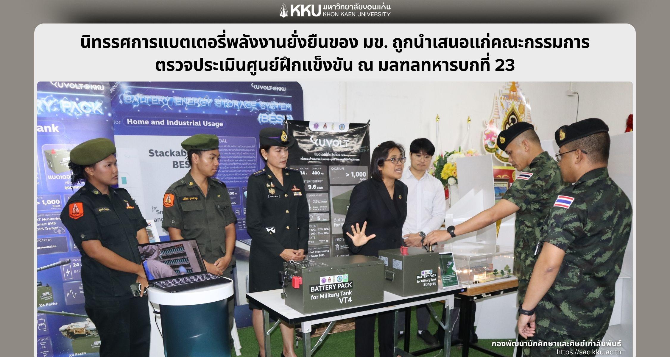 สถานศึกษาวิชาทหารมหาวิทยาลัยขอนแก่น ร่วมจัดแสดงนิทรรศการนวัตกรรมแบตเตอรี่ พลังงานที่ยั่งยืนสำหรับภารกิจด้านความมั่นคง ในการรับตรวจมาตรฐานการปฏิบัติหน่วยฝึกวิชาทหาร “ตามโครงการศูนย์ฝึกแข็งขัน สถานศึกษาร่วมใจ มุ่งไปสู่มาตรฐานเดียวกัน” ประจำปีการศึกษา 2568