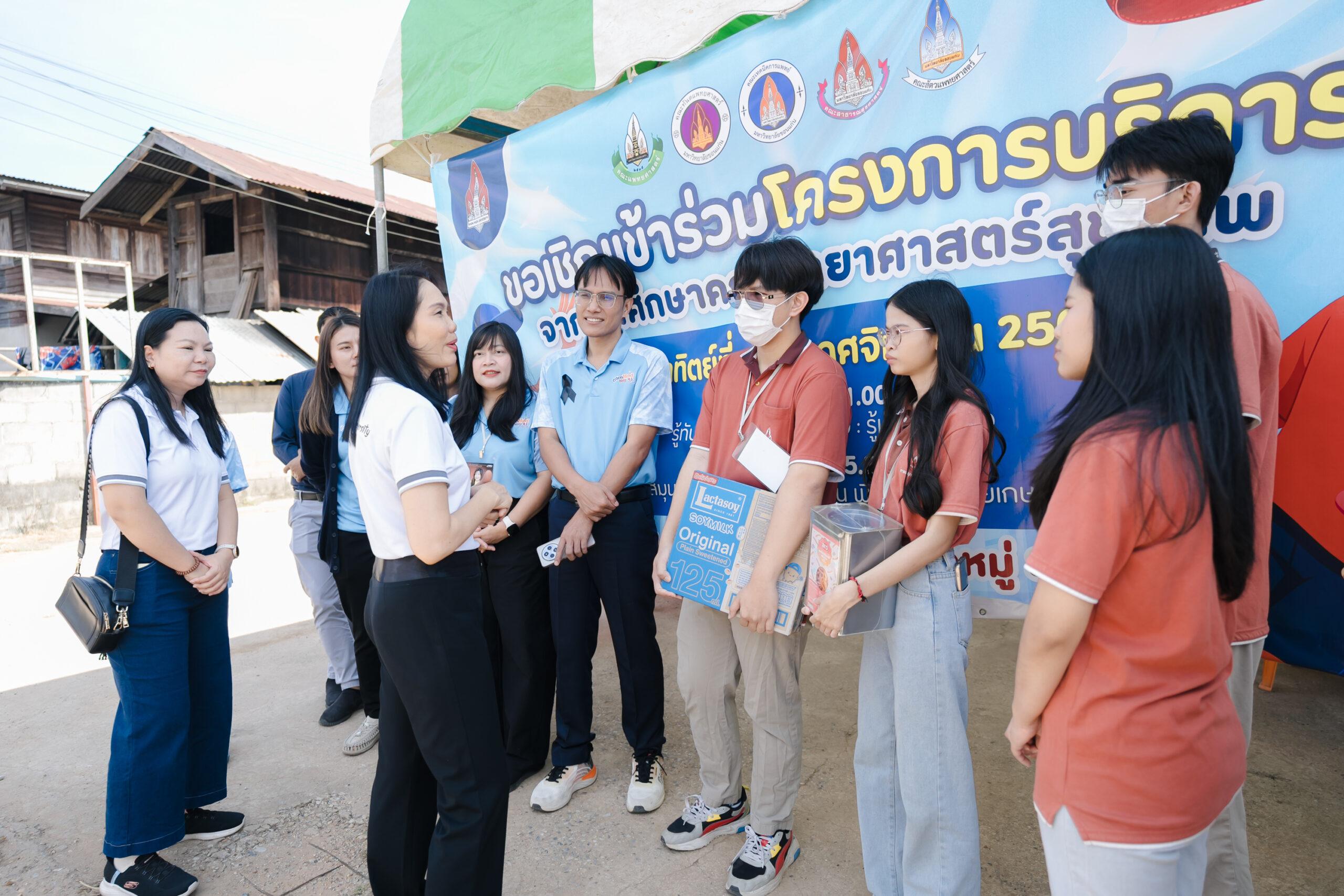 รศ.ดร.เพ็ญศรี เจริญวานิช ได้กล่าวชื่นชมและให้กำลังใจแก่นักศึกษาและคณาจารย์ทุกคนที่ทุ่มเทให้กับโครงการนี้ พร้อมขอบคุณผู้นำชุมชน อสม. และคนในชุมชนที่ให้การต้อนรับและให้การร่วมมือเป็นอย่างดี พร้อมเน้นย้ำว่า “โครงการฝึกภาคสนามร่วมฯ ไม่เพียงแต่เป็นการฝึกฝนทักษะวิชาชีพ แต่ยังเป็นการบ่มเพาะบัณฑิตให้มีหัวใจของการเป็นผู้รับใช้สังคม (Social Devotion) ซึ่งเป็นหนึ่งในพันธกิจหลักของมหาวิทยาลัยขอนแก่น ประสบการณ์ที่นักศึกษาได้รับในวันนี้ จะเป็นรากฐานสำคัญในการเติบโตไปเป็นบุคลากรที่มีคุณภาพและเข้าใจชุมชนอย่างแท้จริงในอนาคต”