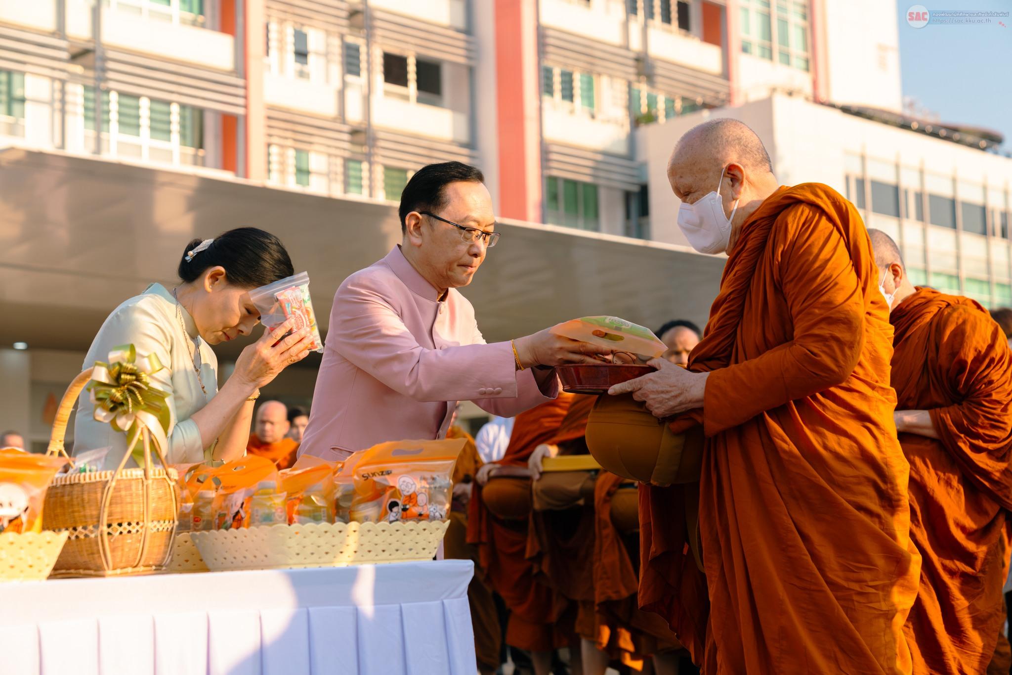 พระสงฆ์ จํานวน 10 รูป รับบิณฑบาต ณ บริเวณหน้าอาคารสิริคุณากร