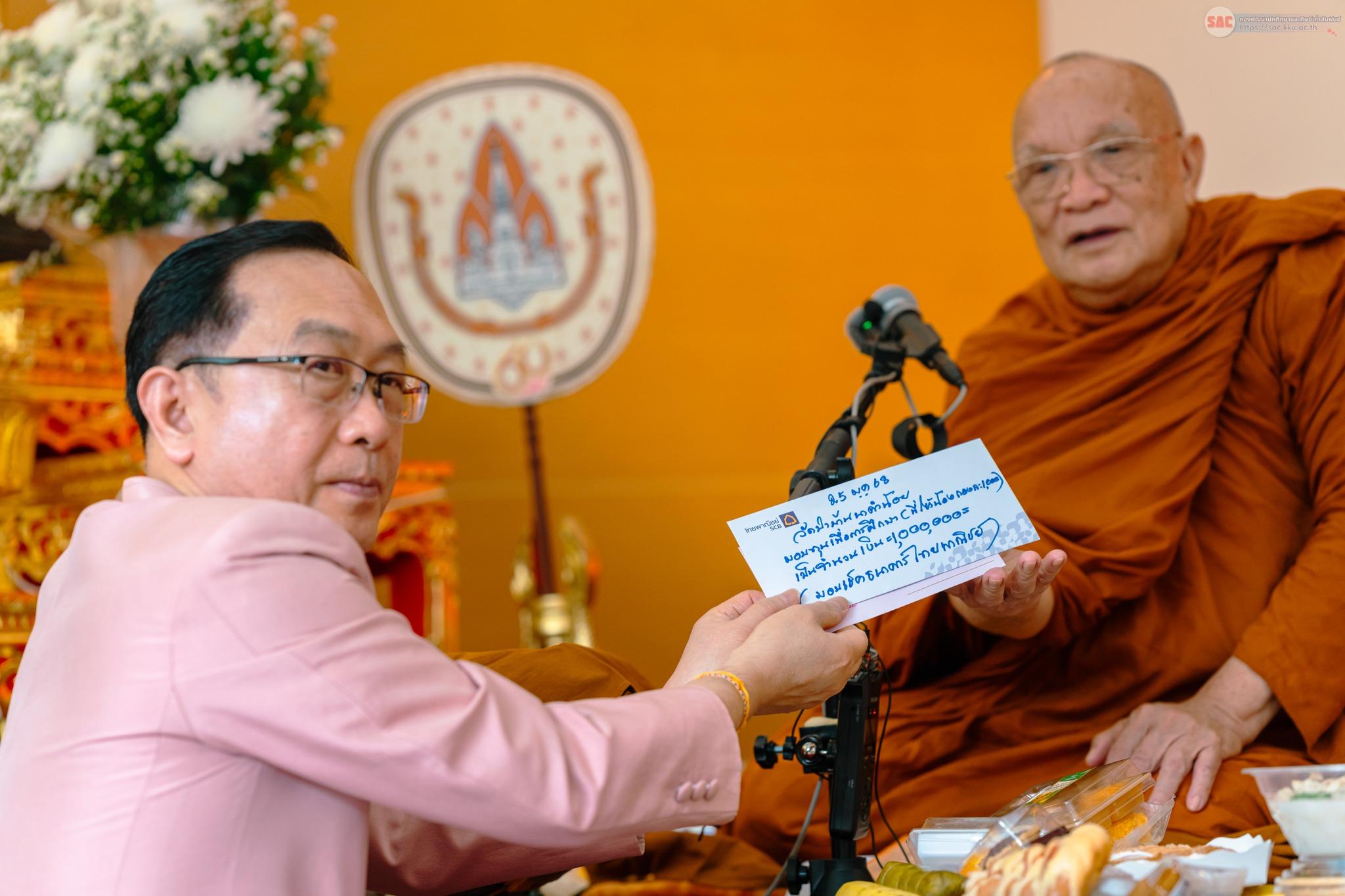 ผู้บริหาร บุคลากร นักศึกษาและพุทธศาสนิกชน พร้อมกัน ณ สํานักงานอธิการบดี อาคารสิริคุณากร