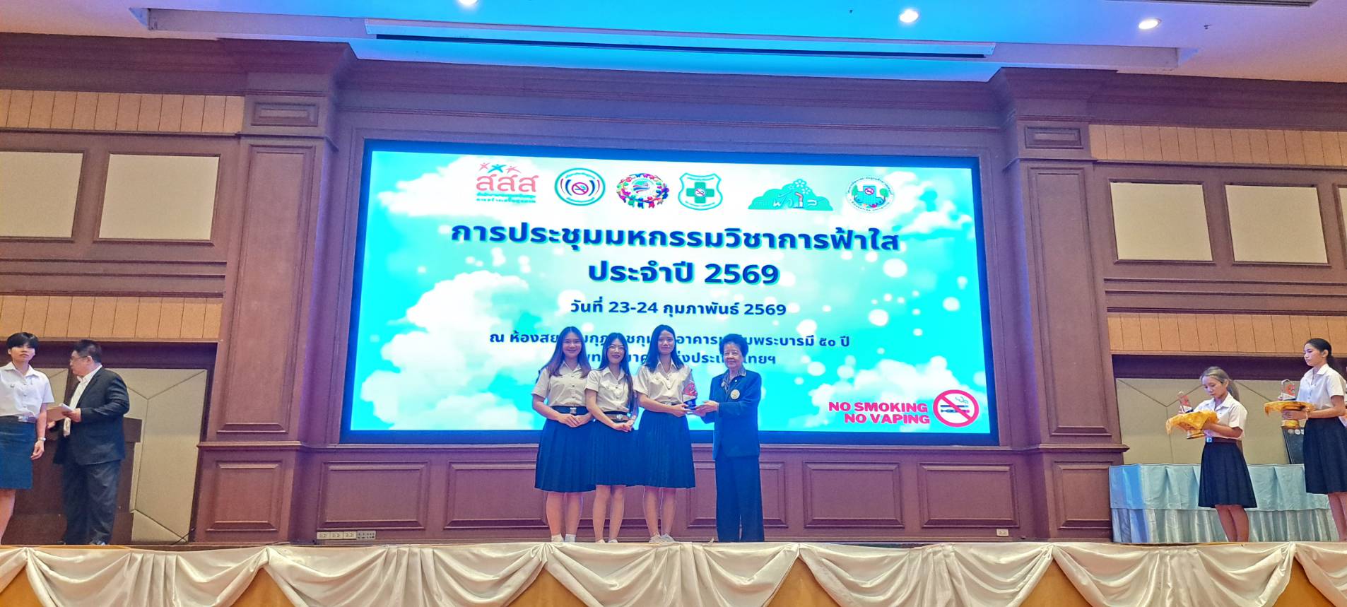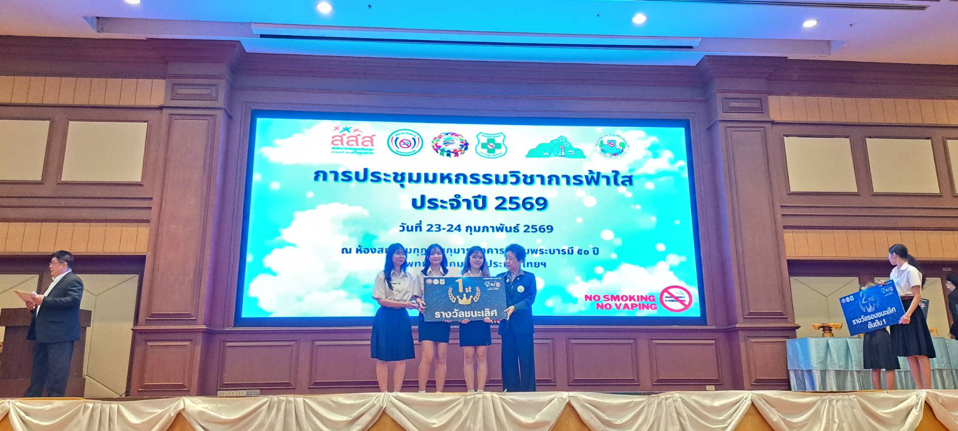 จากการประชุมมหกรรมวิชาการฟ้าใส สถาบันอุดมศึกษาปลอดบุหรี่ ประจำปี 2569 ซึ่งจัดขึ้น ณ อาคารแพทยสมาคมแห่งประเทศไทยฯ กรุงเทพมหานคร เมื่อวันที่ 23 กุมภาพันธ์ 2569 ที่ผ่านมา นอกจากมหาวิทยาลัยขอนแก่นจะได้รับรางวัลสถาบันอุดมศึกษาปลอดบุหรี่ดีเด่นแล้ว นักศึกษายังได้สร้างผลงานอันน่าภาคภูมิใจ คว้ารางวัลเกียรติยศกลับมาถึง 2 เวทีการประกวด ได้แก่
