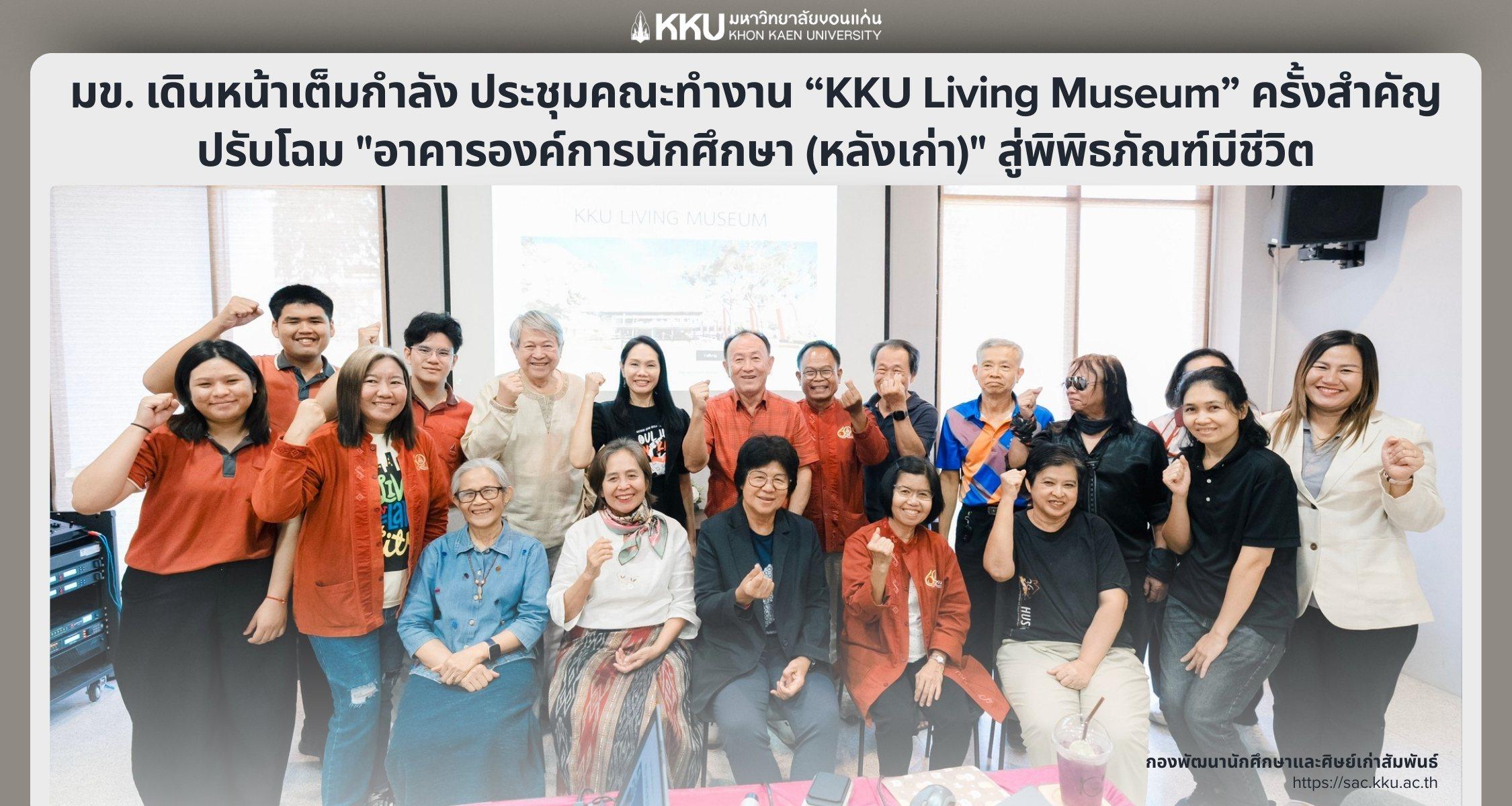 เมื่อวันที่ 28 กุมภาพันธ์ พ.ศ. 2569 ณ ห้องสู่ขวัญ โรงแรมบายาสิตา มหาวิทยาลัยขอนแก่น ได้มีการประชุมคณะกรรมการรวบรวมข้อมูลเพื่อสนับสนุนการจัดทำ KKU Living Museum นำโดย นายสมศักดิ์ แต้เจริญวิริยะกุล อดีตนายกสมาคมศิษย์เก่า มข. (KKU12) และ รศ.ดร.เพ็ญศรี เจริญวานิช รองอธิการบดีฝ่ายกิจการนักศึกษาและนวัตวณิชย์ พร้อมด้วยศิษย์เก่า ผู้ทรงคุณวุฒิ และตัวแทนจากหน่วยงานต่างๆ ที่เกี่ยวข้องเข้าร่วมอย่างพร้อมเพรียง