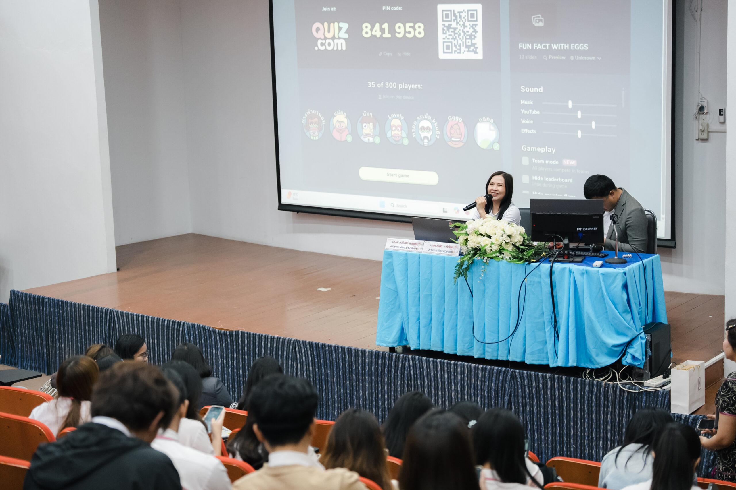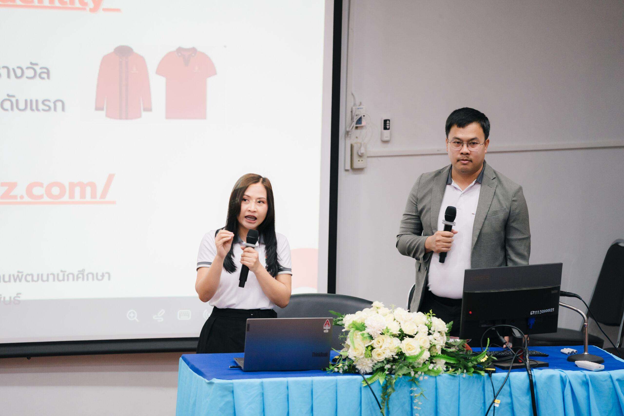 ทีมวิทยากรนำโดย นางเจษฎาพร ศรีรัตนประพันธ์ รักษาการแทนผู้อำนวยการกองพัฒนานักศึกษาและศิษย์เก่าสัมพันธ์ พร้อมด้วย นางสาววรินทร ภาคภูมิ นักวิชาการศึกษาชำนาญการ และ นายธวัชชัย ธวัชโชติ นักวิชาการศึกษาปฏิบัติการ ได้ร่วมบรรยายในหัวข้อ “KKU EGGS STUDENT’S IDENTITY”