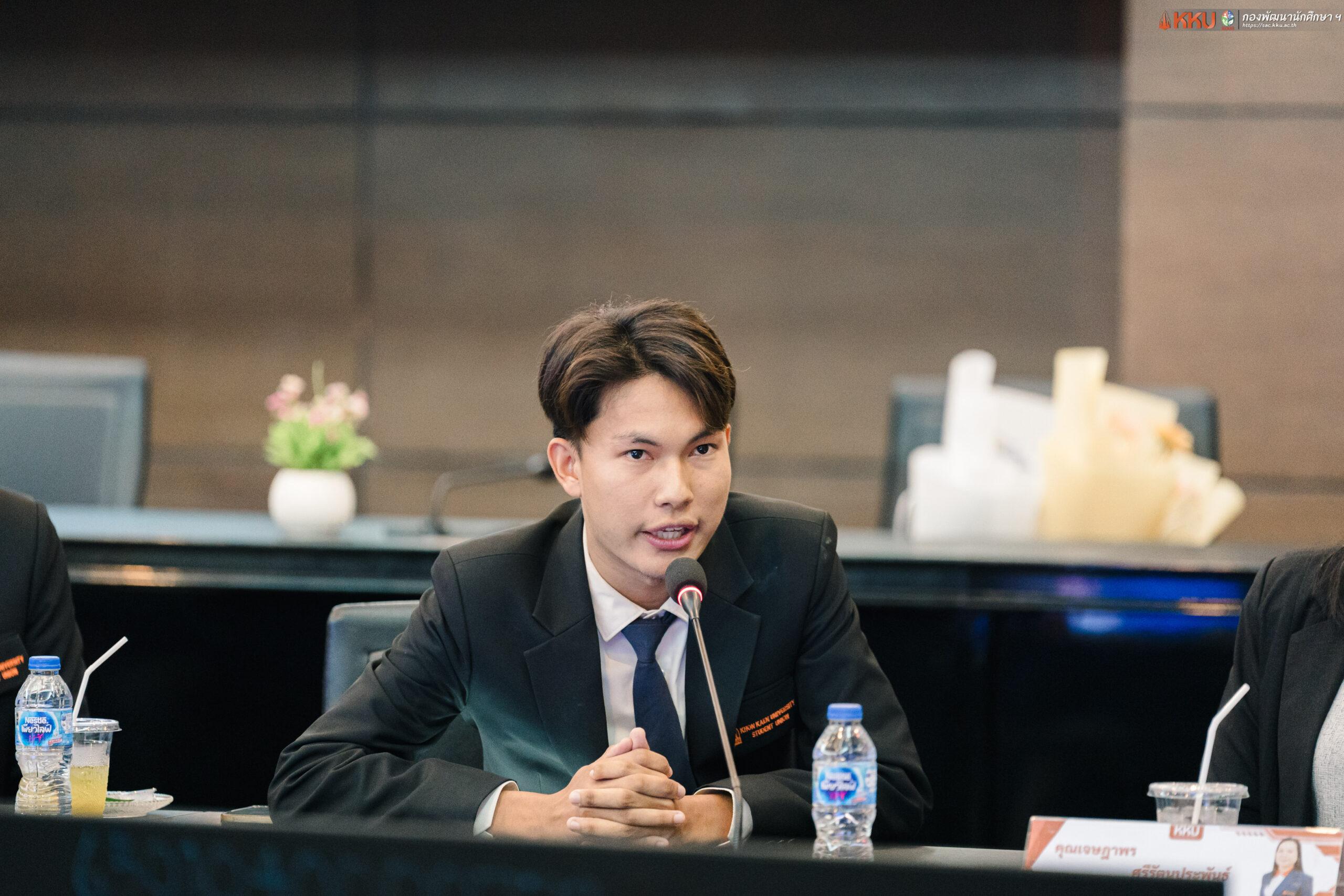 ขณะที่ นายสิทธิพร กุมภาษี ประธานสภานักศึกษามหาวิทยาลัยขอนแก่น ประจำปีการศึกษา 2569 กล่าวเสริมว่า “ทางสภานักศึกษาขอขอบคุณผู้บริหารทุกท่านสำหรับนโยบายในการดำเนินงาน เราจะดำเนินกิจกรรมควบคู่ไปกับองค์การนักศึกษา เพื่อพัฒนาองค์กรกิจกรรมนักศึกษา และทำหน้าที่เป็นปากเป็นเสียงให้กับเพื่อนนักศึกษา เพื่อพัฒนามหาวิทยาลัยของเราต่อไปครับ”