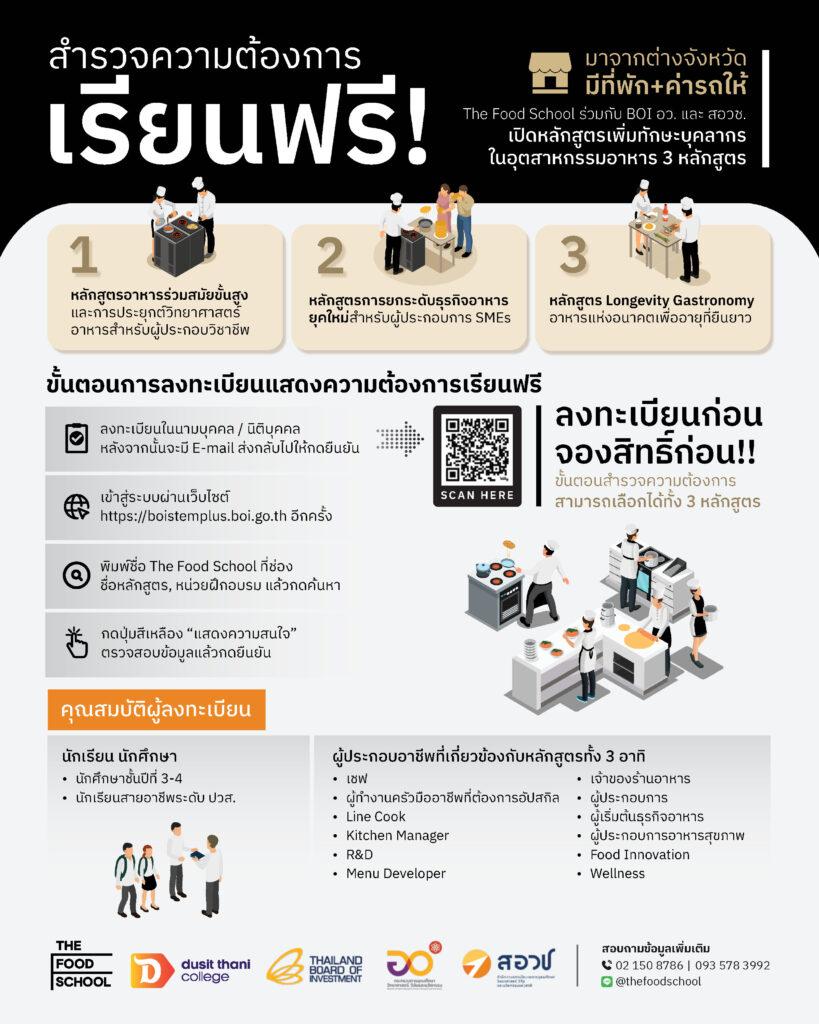 สอบถามข้อมูลเพิ่มเติมได้ที่: The Food School Bangkok โทร: 02-150-8786 Line Official: @thefoodschool